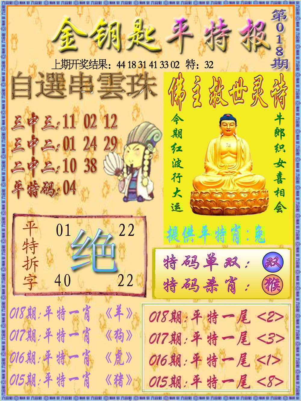 006期: ★平特3肖★ 【鸡猴马】 开2个准